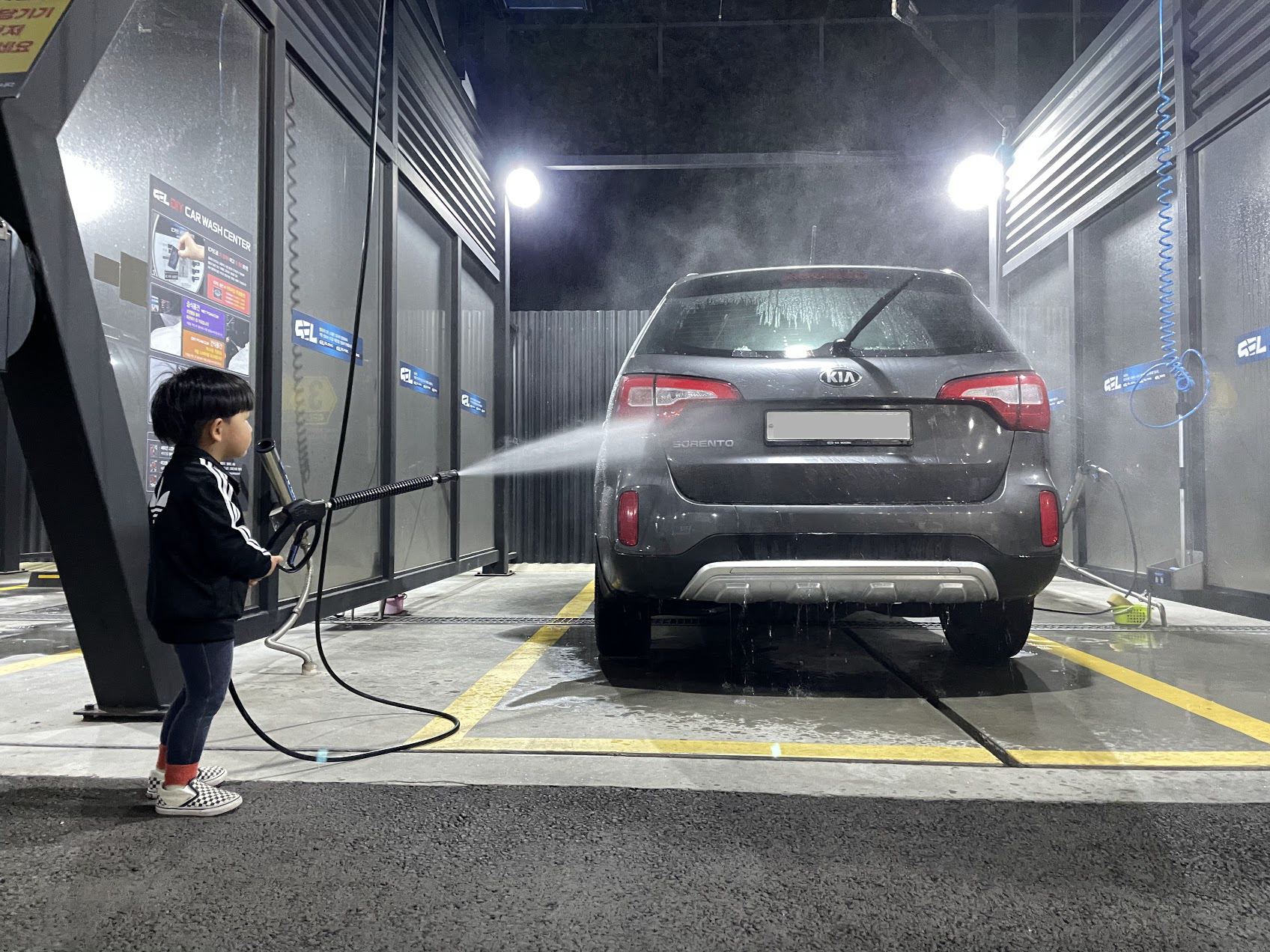 아빠랑 엄마 차 세차하러 ㅋㅋ