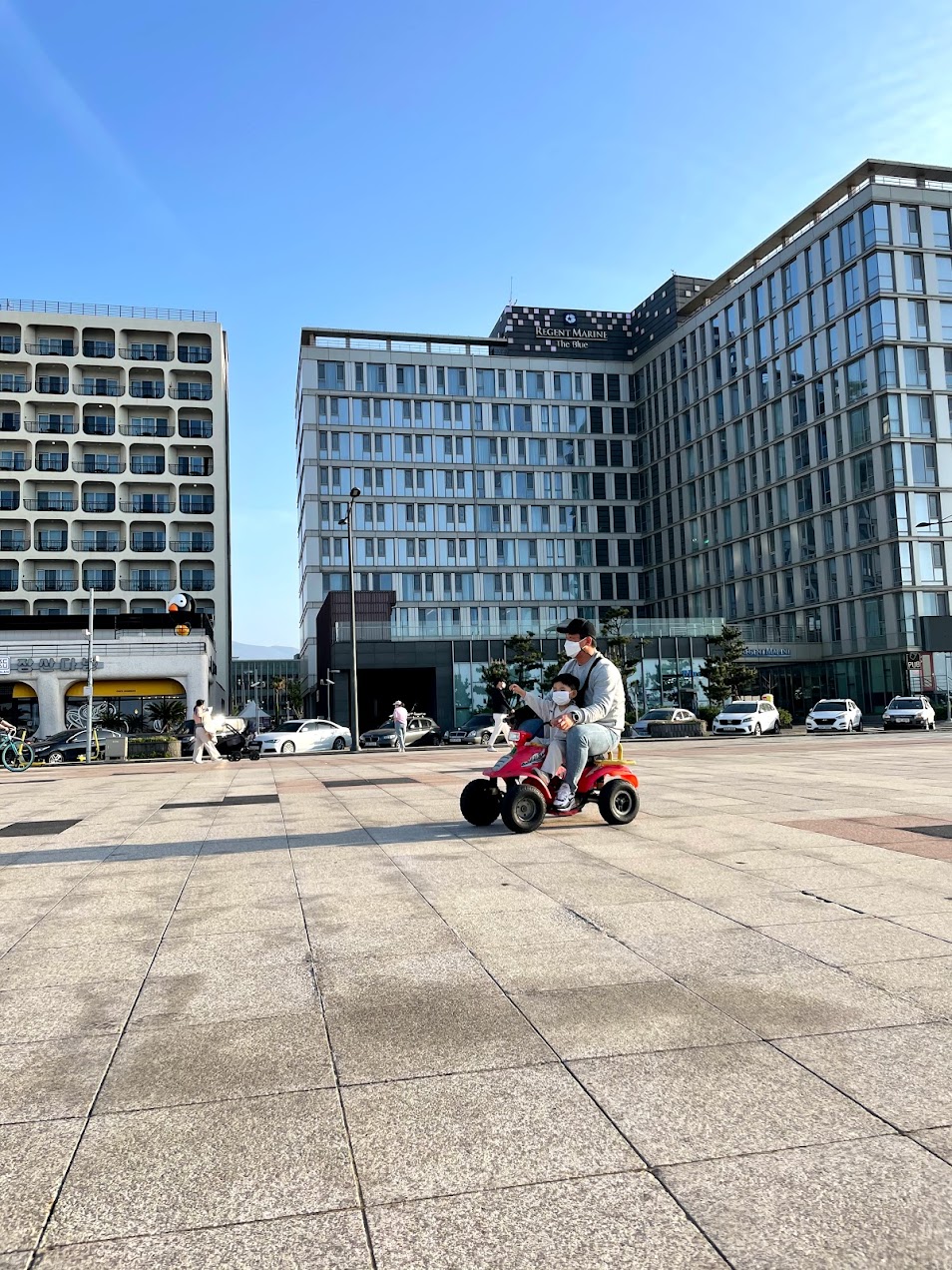 광장에서 빌려주는 전동차는 생각보다 비쌌다.
