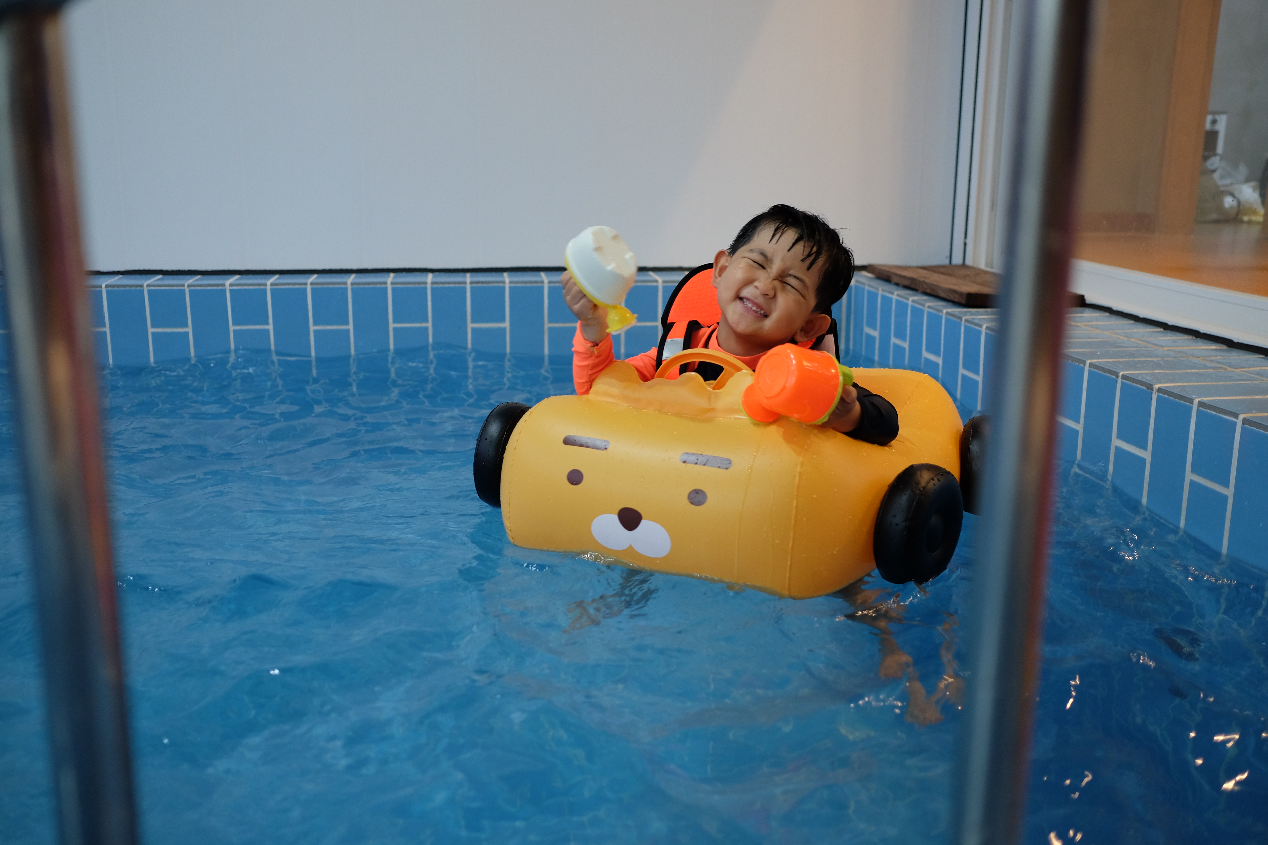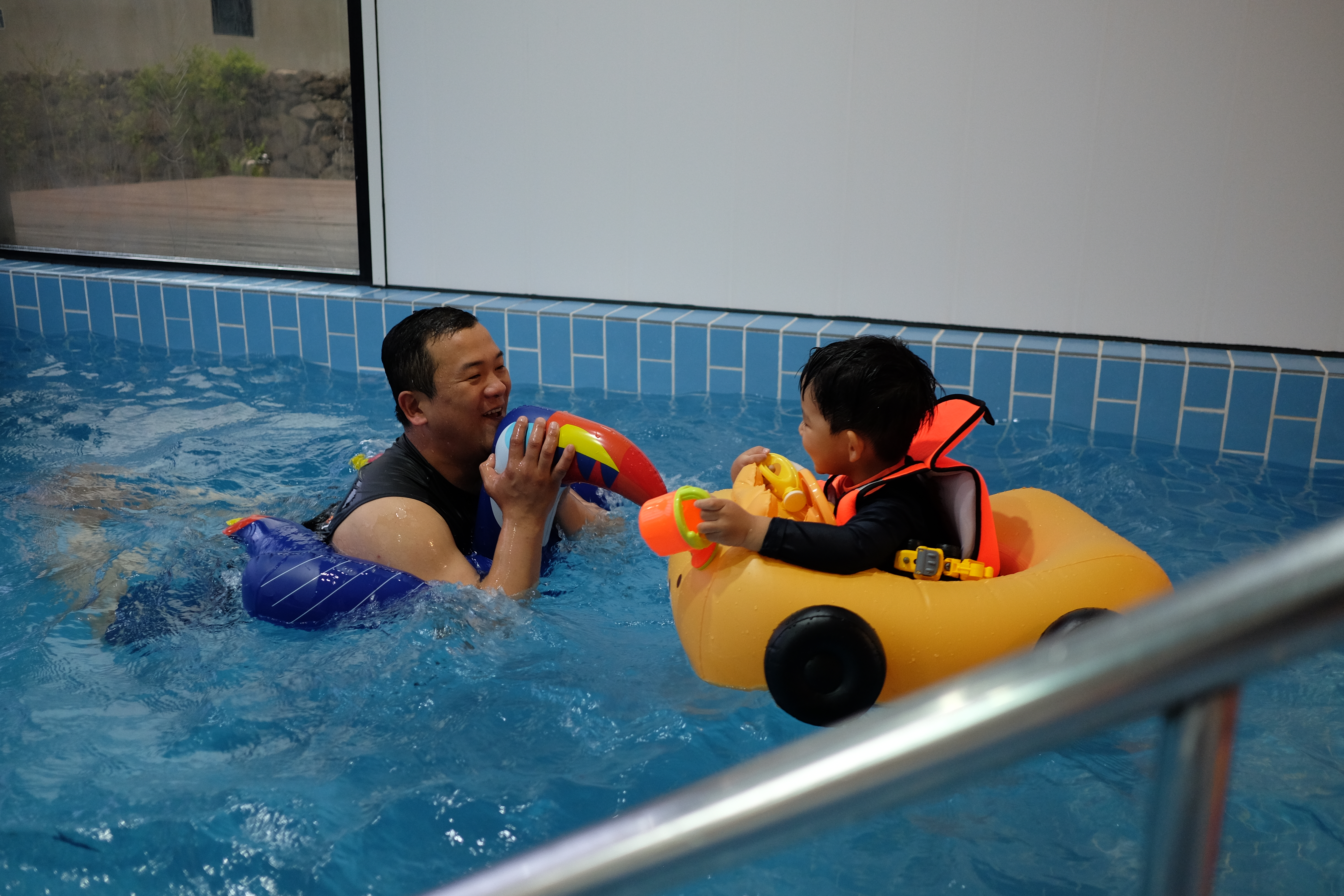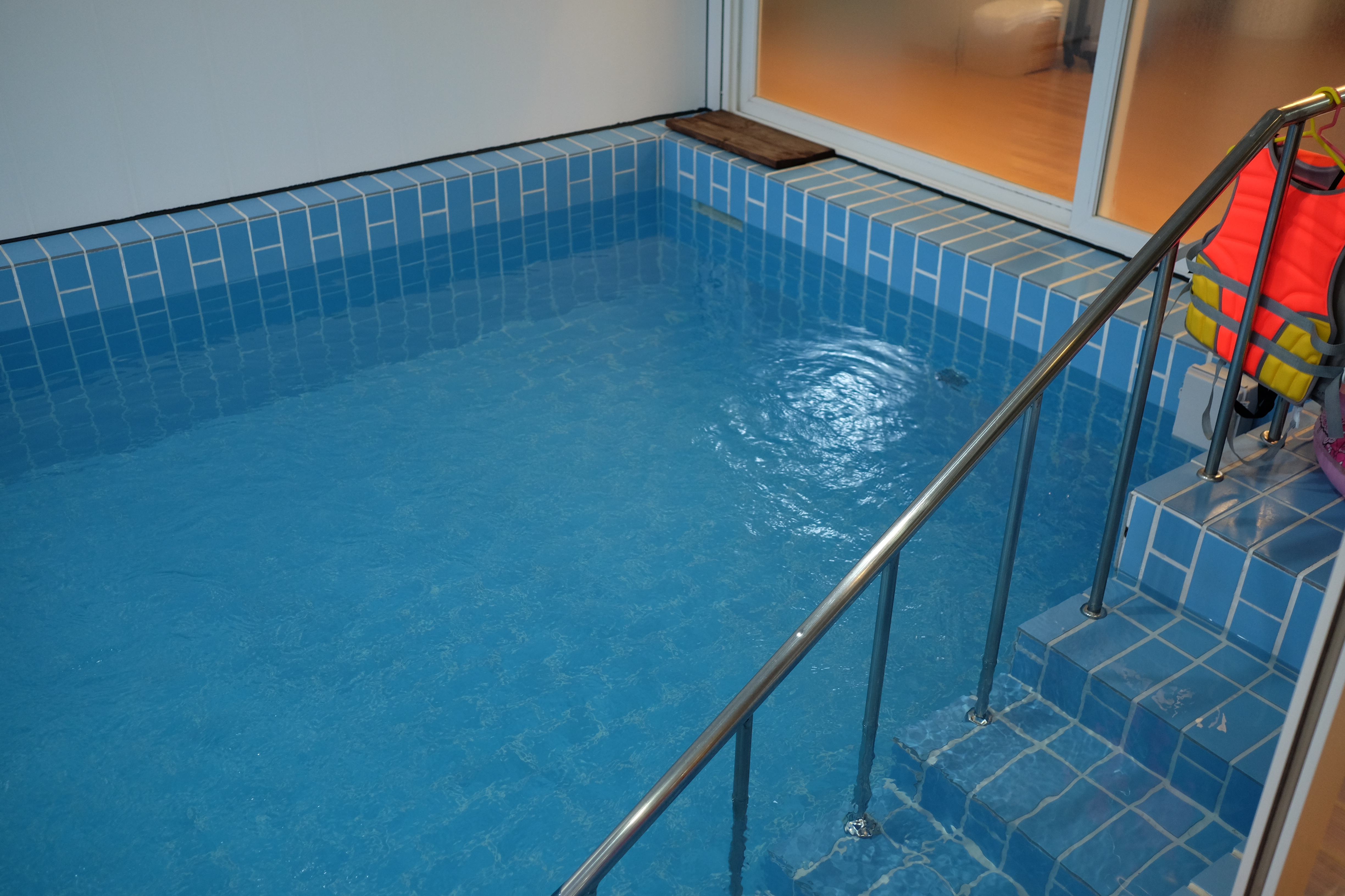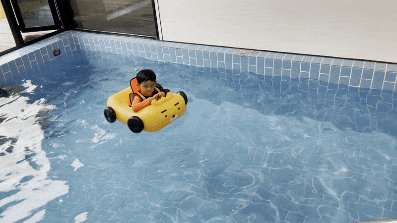 수영장 물도 따뜻하고 튜브랑 구명조끼도 있고 넓고 좋았다 ㅎㅎ