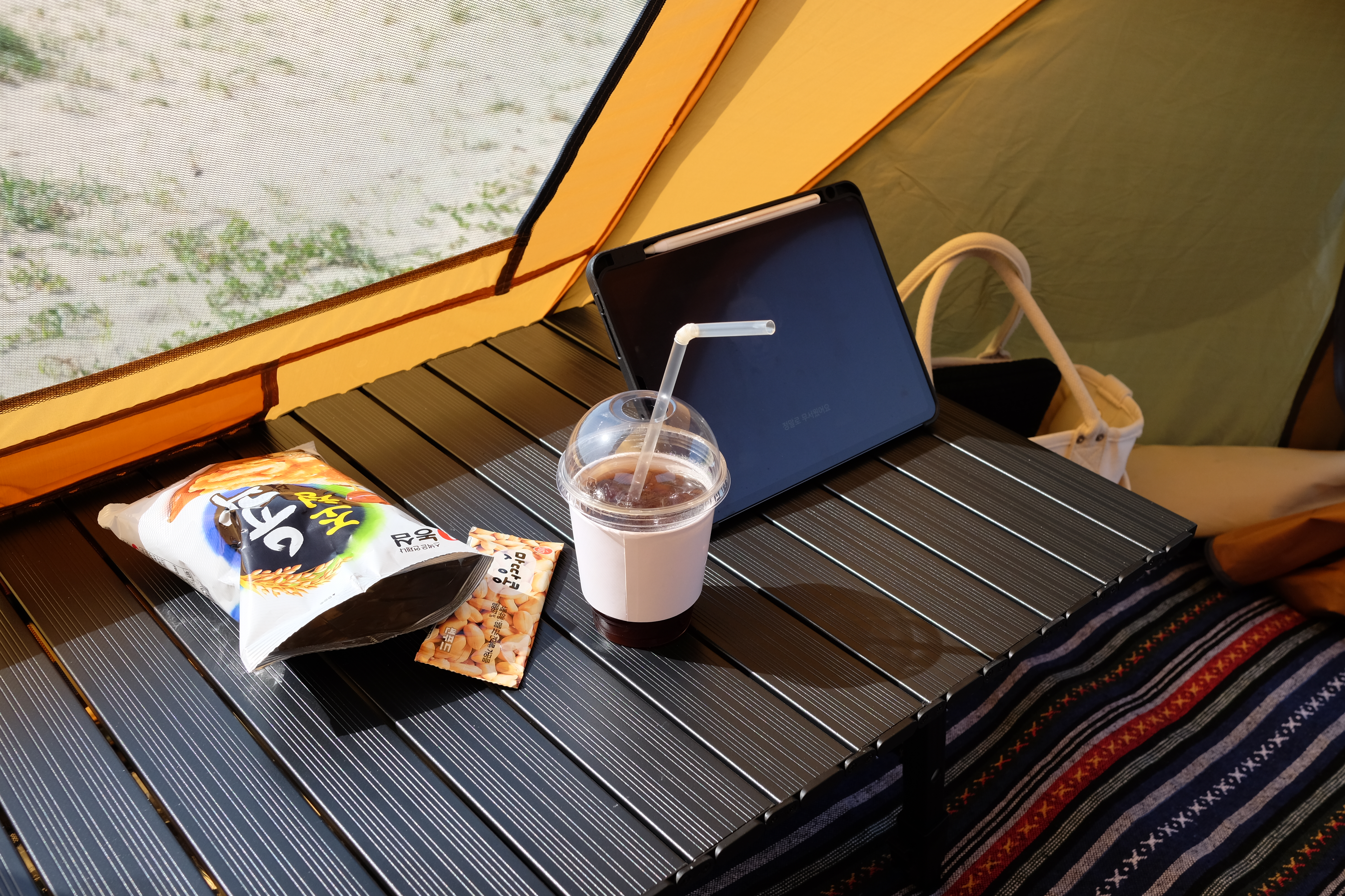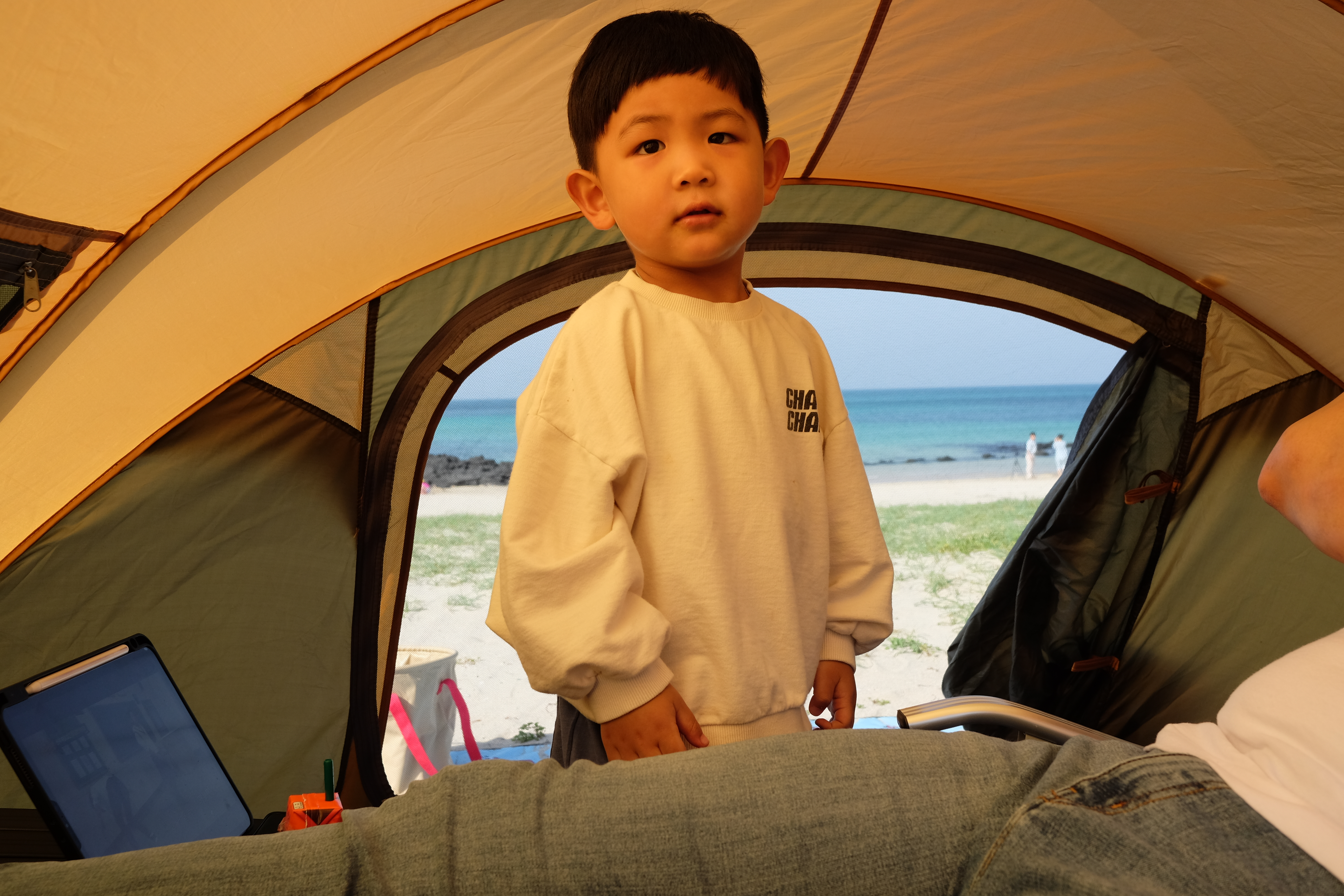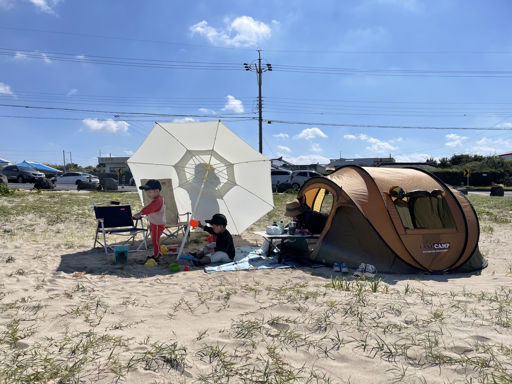 잔디랑 모래가 같이 있어서 간단히 텐트 치고 놀기에도 딱 - !