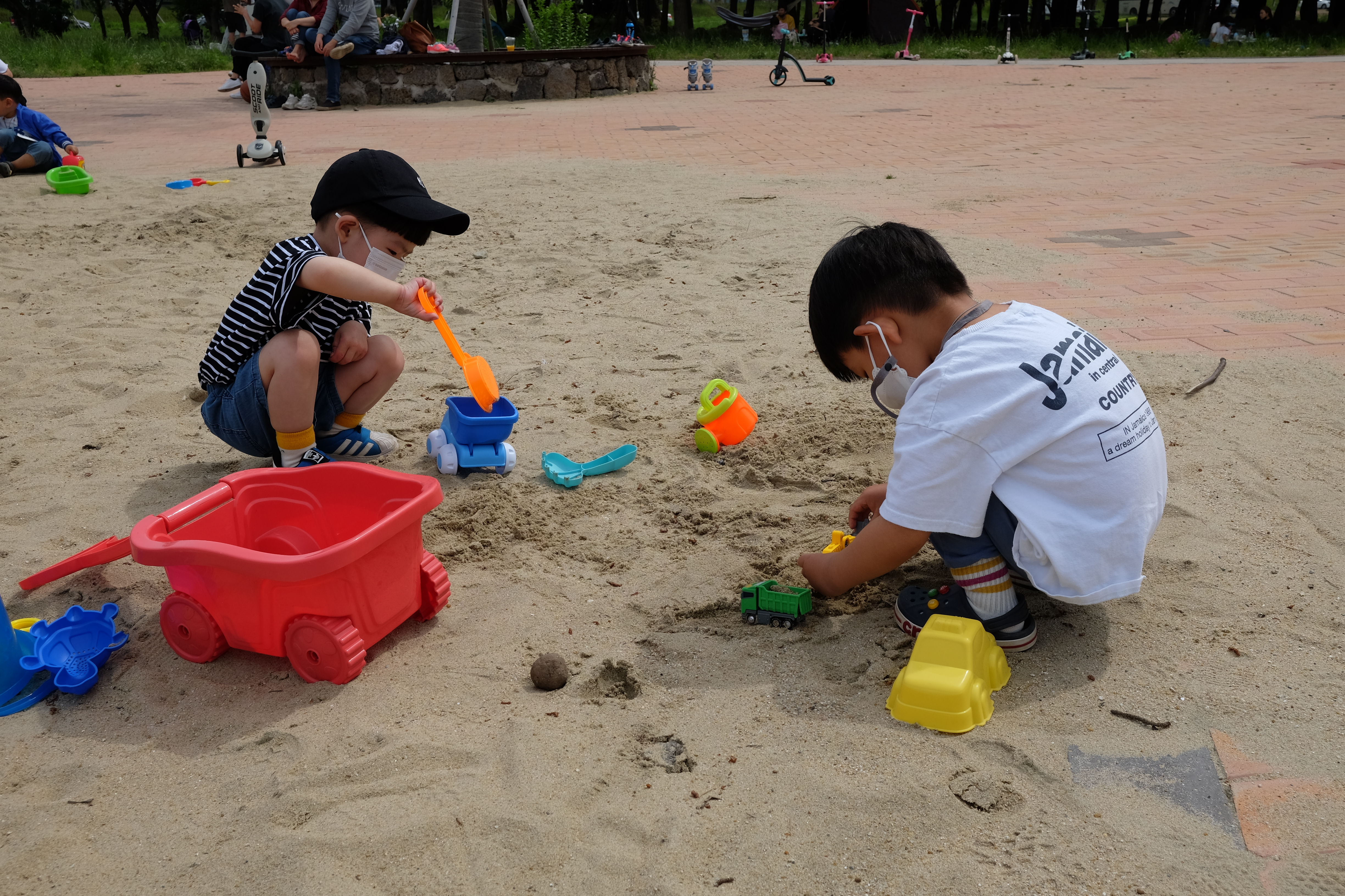 놀이터 바닥이 다 모래로 되어있어서 ㅋㅋ