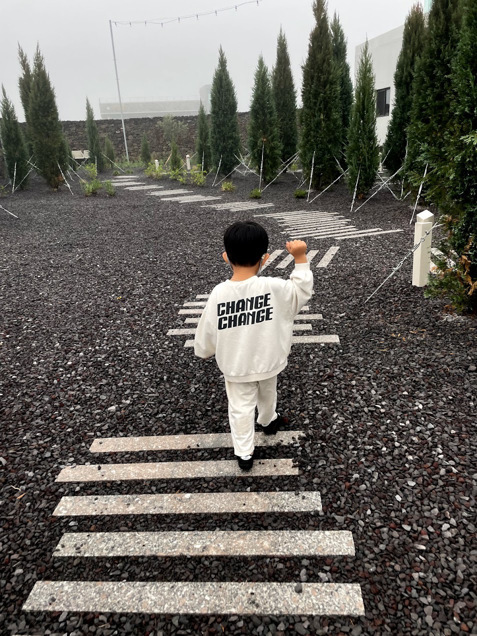 마당에 꾸며놓은 돌이 횡단보도 같다고 손들고 걸음 ㅋㅋㅋ