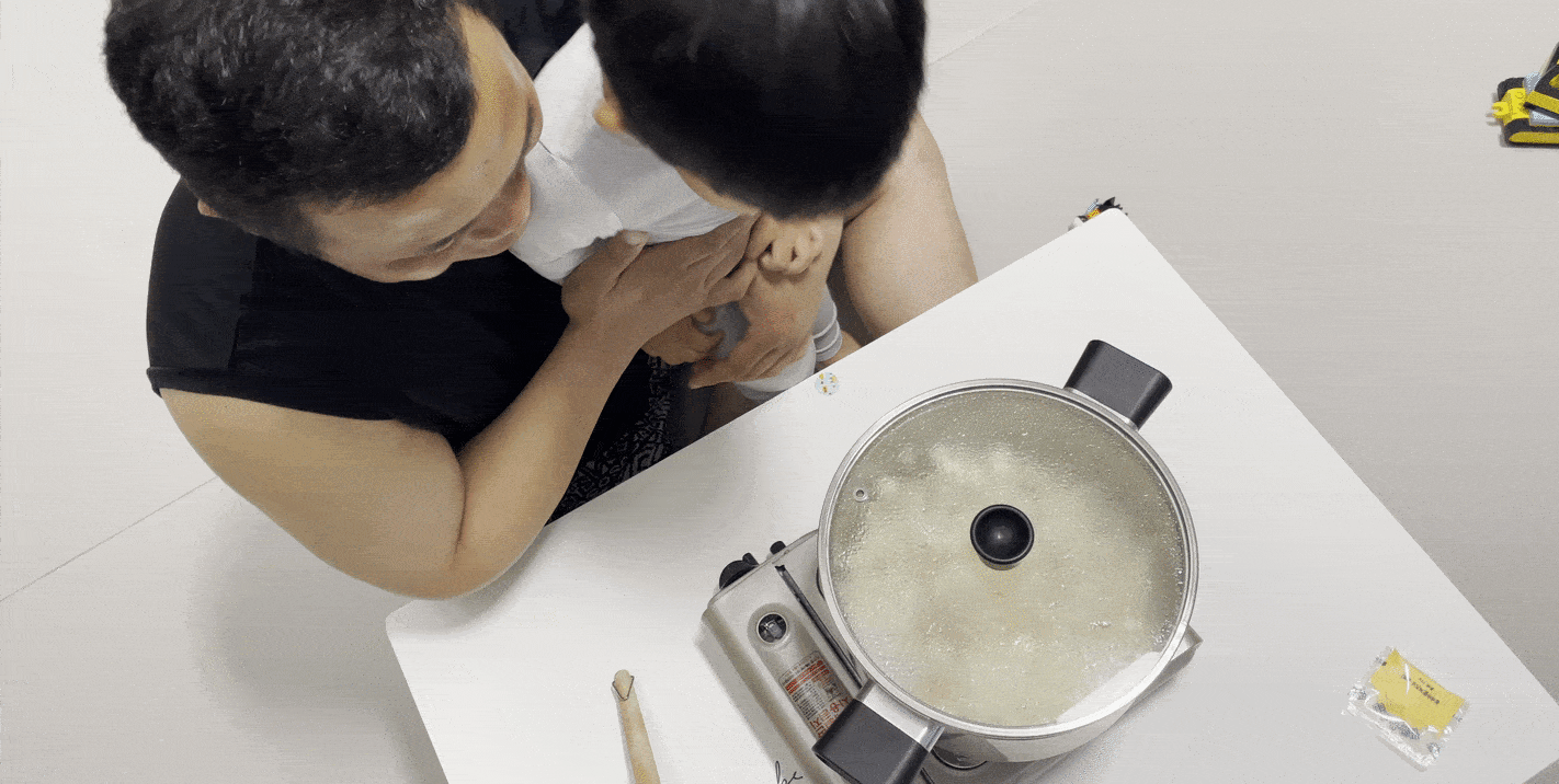 지환이한테 팝콘 튀는 거 보여준다고 버너를 꺼냈다 ㅋㅋ