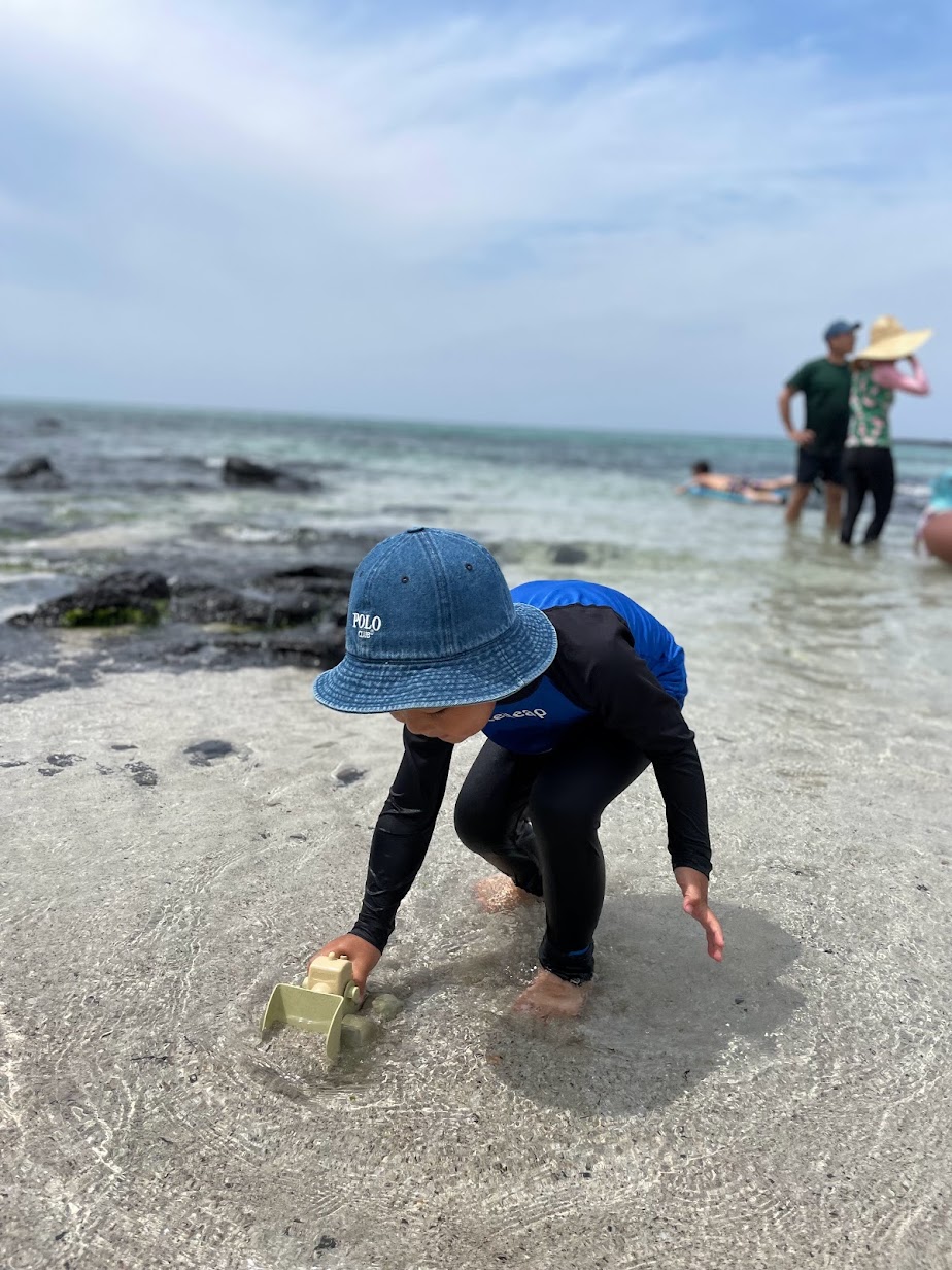 햇빛은 쎄긴한데 물은 좀 추운가 보다.