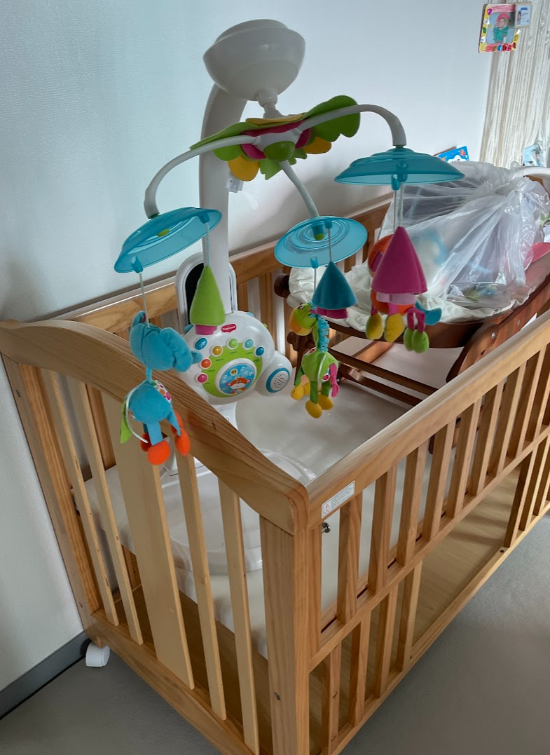 어제 사촌오빠가 아기침대랑 모빌이랑 바운서랑