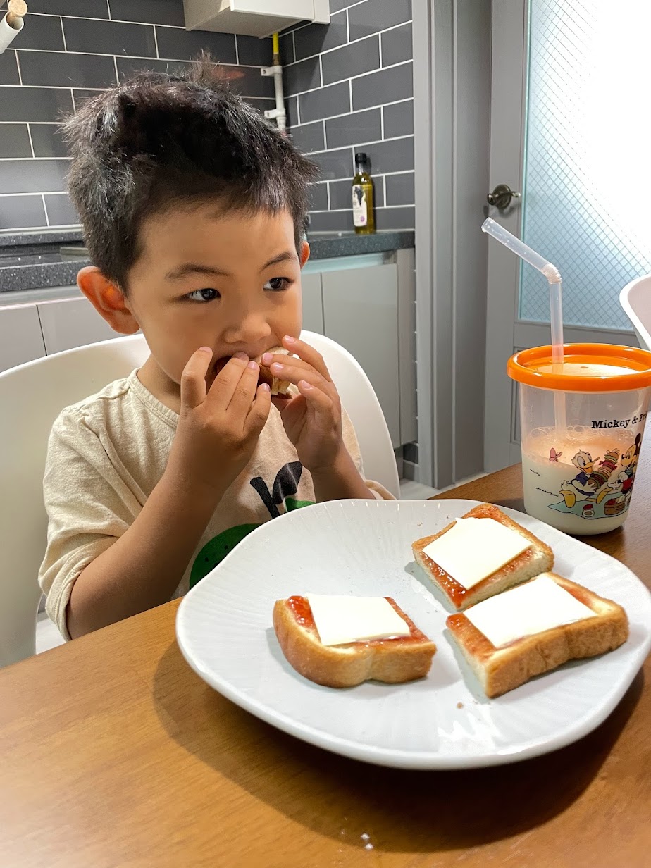아침에 간단히 식빵에 딸기잼에 치즈 ㅋㅋ