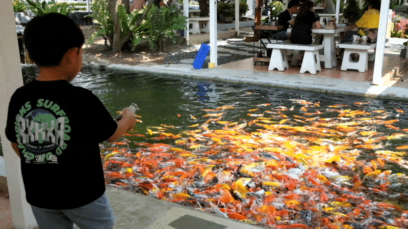 또 연못도 잘 꾸며놨는데 물고기 왜이렇게 많아..!