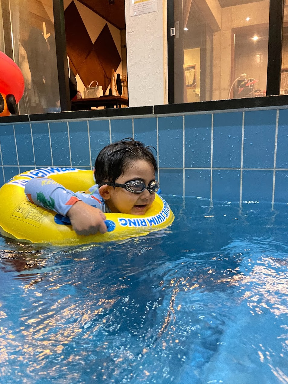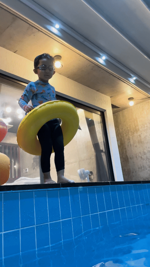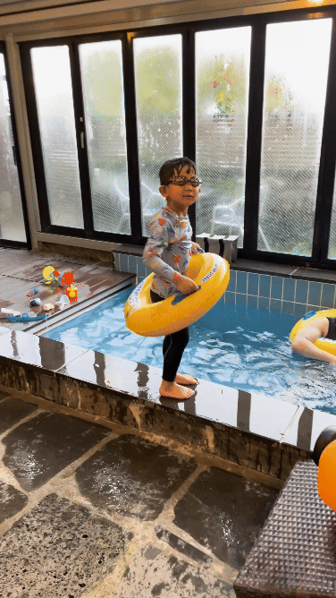 겨울이지만 수영장이 뜨뜻해서 조타.