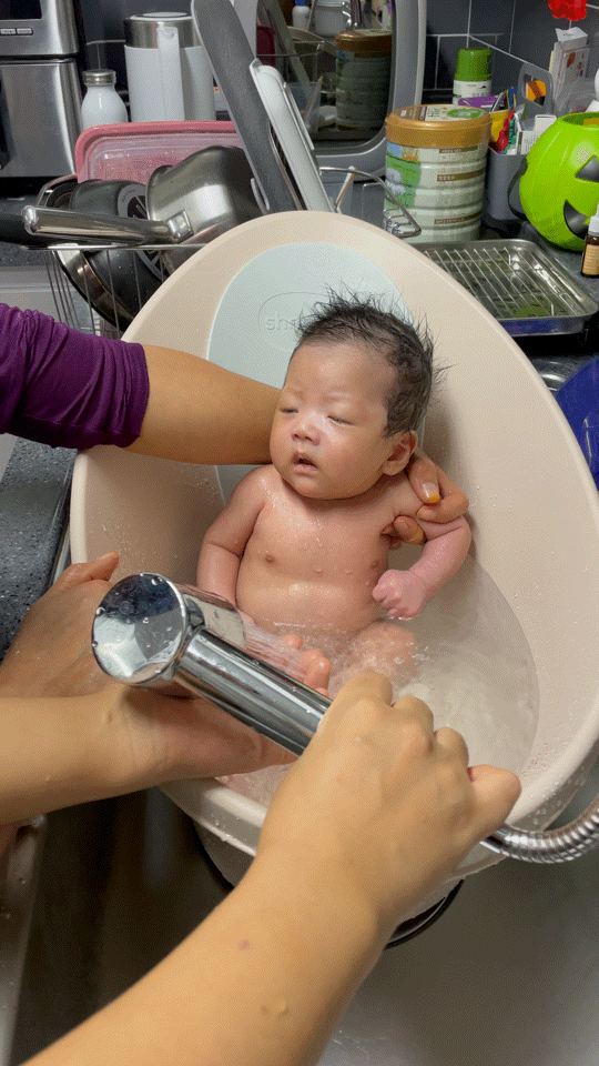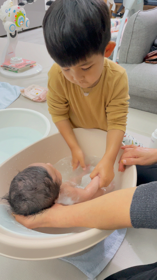 할머니가 한 번 비누칠 해보라하니까 하는 시늉은 낸다 ㅋㅋ